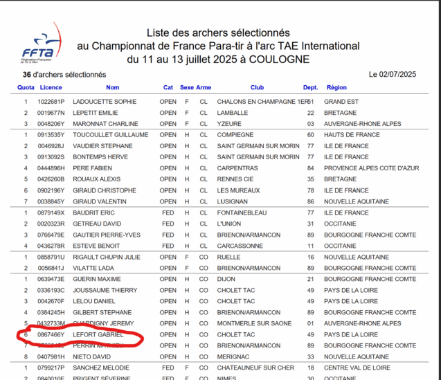Qualification au Championnat de France / Sélection pour les Championnats du Monde de para Tir à l’arc